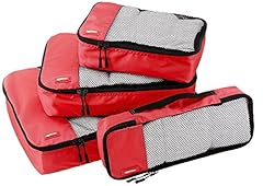 AmazonBasics Kleidertaschen-Set, 4-teilig, je 1 kleine, mittelgroße, große und schmale Packtasche, Rot