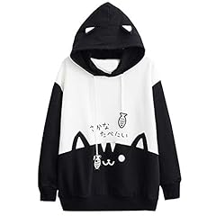 Zarupeng Damen Langarm-Pullover mit Katzen Druck, Frauen Casual Kapuzenpullover Dünne Hoodie Sweatshirt Blusen Mantel