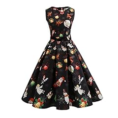Zarupeng Frauen Weihnachten Drucken Ärmellos Rundhals Party Panel Kleid (S, Schwarz)