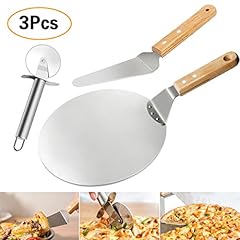 Gifort Pizzaschieber Pizzaschaufel Edelstahl + Pizzaheber mit Holzgriff +Pizzaschneider Qualitäts 430 Edelstahl zum Backen Hausgemachte Pizza und Brot Kuchen & Kekse