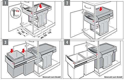 - Einbaumülleimer zur Bodenmontage ab 40cm Schrankbreite (Außen)