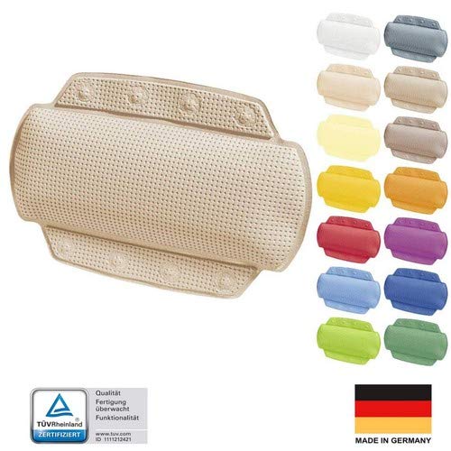 Spirella Badewannenkissen Alaska Beige mit 8 Saugnäpfen antibakteriell, rutschhemmend 23 x 32 cm waschbar, Made in Germany