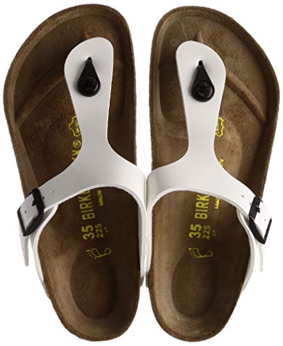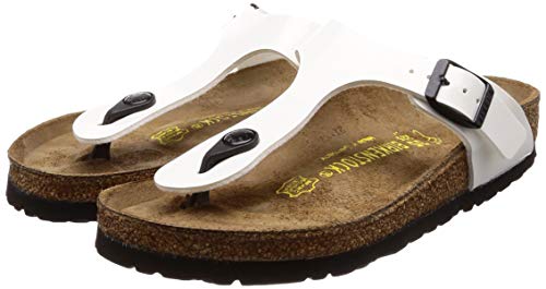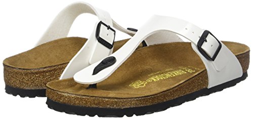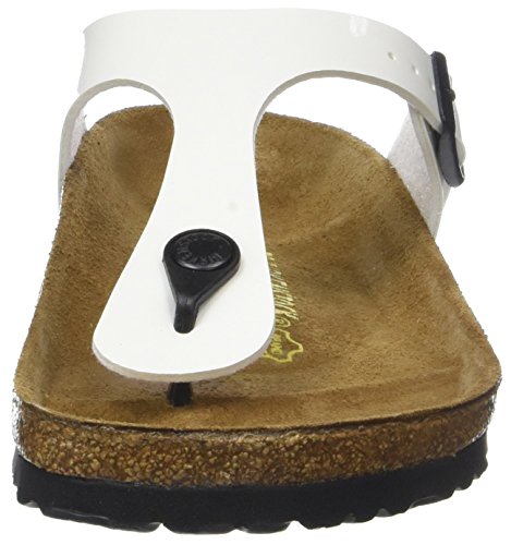 Birkenstock Classic Gizeh Birko-Flor Damen Zehentrenner, Weiss Lack, 39 (schmal)