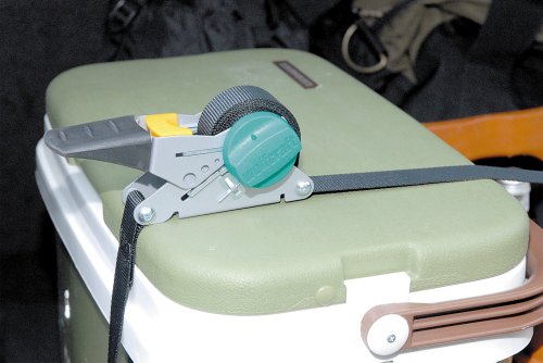 Wolfcraft 3271000 Ratschen-Bandspanner mit Haken und Bandaufwicklung (Spannkraft 80 kg) 4 m