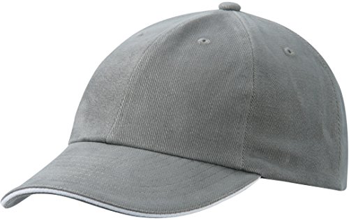 6 Panel Raver Bicolor Sandwich Baseball Cap in Heavy Brushed Cotton mit Metallschnalle zur Grössenverstellung in 16 Farbkombinationen ( Einheitsgrösse ) Dunkelgrau-Weiss