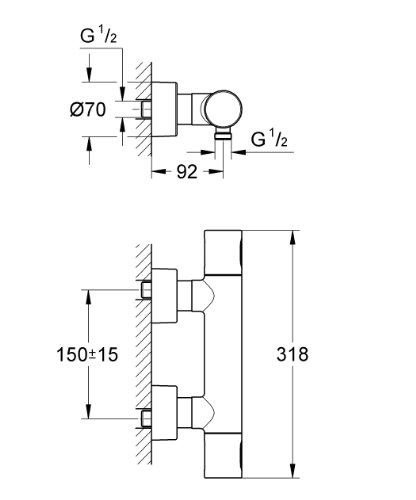 GROHE Grohtherm 3000 Cosmopolitan | Thermostate - Thermostat-Brausebatterie, DN 15 | Wandmontage | chrom | 34274000