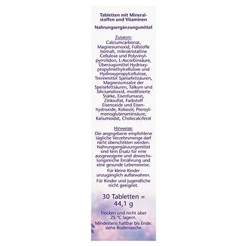 - Das Ergänzungsmittel für Frauen enthält Calcium, Vitamin D, Folsäure, Jod, Vitamin C, Magnesium, Eisen und Zink, um die Versorgung der Frau gezielt zu unterstützen