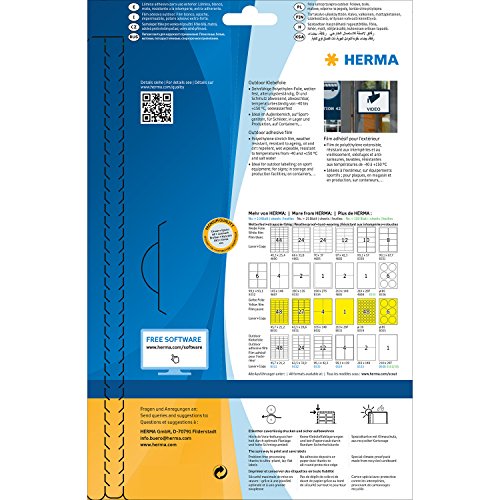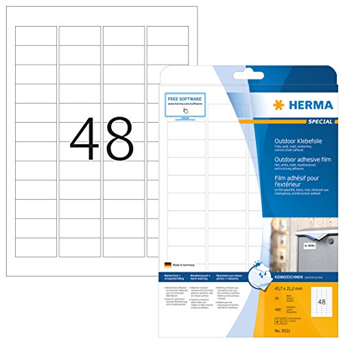 HERMA 9531 Wetterfeste Folien-Etiketten DIN A4 (45,7 x 21,2 mm, 10 Blatt, Polyethylen, matt) selbstklebend, bedruckbar, extrem stark haftende Outdoor Klebefolie, 480 Klebeetiketten, weiß