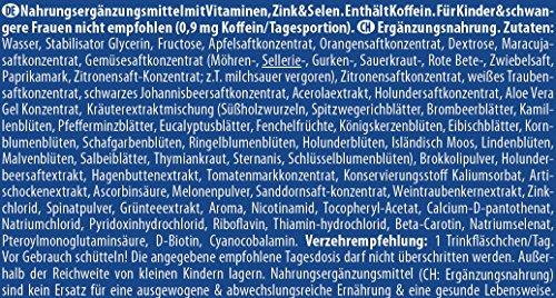 - Mit 46 Pflanzenextrakten, wie Acerola-, Grüntee- und Artischokenextrakt, Aloe Vera Gel, Pfefferminzblätter, Thymiankraut, Spinatpulver oder Süßholzwurzel