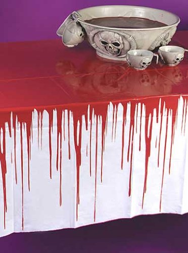 - Die außergewöhnliche und extrem beliebte Blutbad Tischdecke ist ein prima Halloween Partyzubehör und findet Anklang bei Vampiren und Fabelwesen. Die blutige Tischdecke ist eine Einweg Tischdecke und hat die Größe von ca.129 cm x 259 cm.