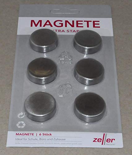 Zeller 11203 Magnet-Set 6-teilig, Ø 2.7 cm, edelstahl