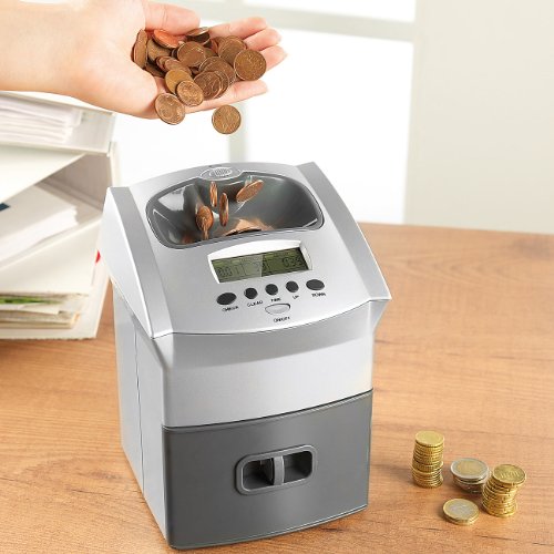 - Praktischer Euro-Münzzähler mit Display-Anzeige • Zählt ca. 45 Münzen/Minute • Zusätzlich mit Uhrzeit-Anzeige