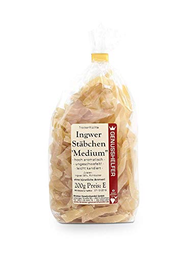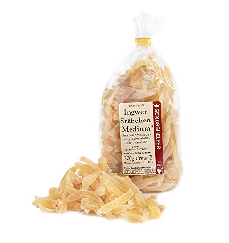 Ingwer Stäbchen medium mild 200 Gramm leicht kandiert - Kandierter Ingwer Pommes - Trockenfrüchte ungeschwefelt - Bremer Gewürzhandel