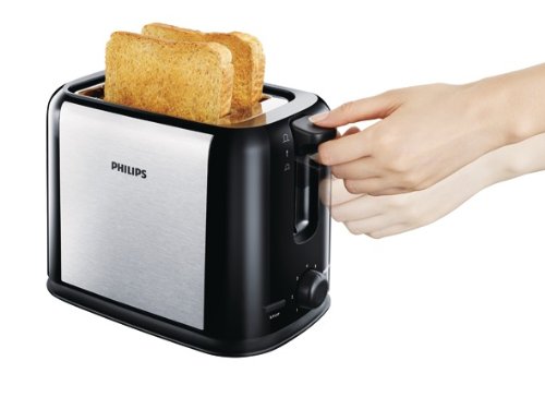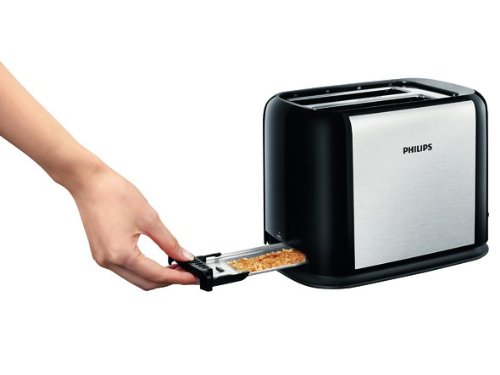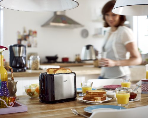 Philips HD2586/20 Toaster (950 Watt, 7 Bräunungsstufen, Stopp-Taste) schwarz/silber