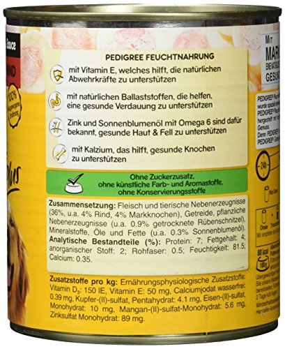Pedigree Adult Plus Hundefutter Markknochen - Rind in Sauce, 12 Dosen (12 x 800 g)