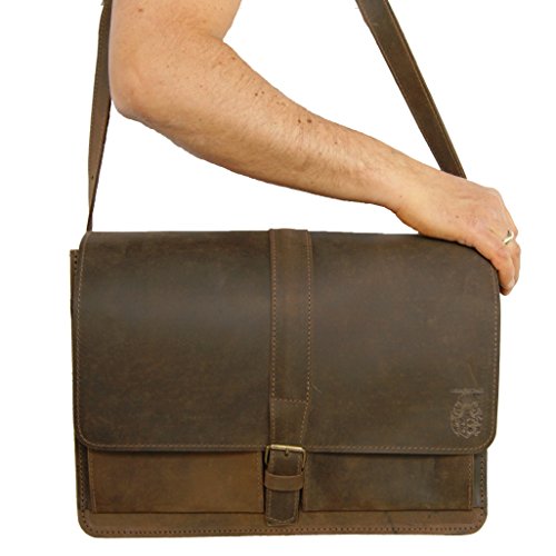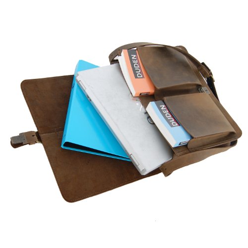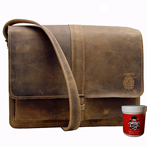 Freiherr von Maltzahn Umhängetasche PLANCK, 40 cm, braun, Bio-Leder + Lederpflege