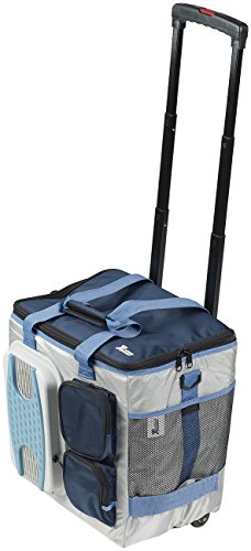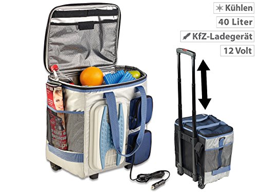 - Thermoelektrische Trolley-Kühltasche • Immer gleich kalt: dauerhafte und gleichmäßige Kühlung • 5 zusätzliche Netz- und Außentaschen: mehr Ordnung in der Tasche • Stromversorgung: 12-V-Zigarettenanzünder, Kabellänge: 220 cm