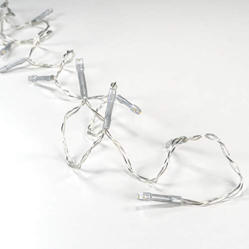 - Die 30 weiß leuchtenden LEDs sorgen auf einer Gesamtlänge von 5 Metern (davon 15 cm Zuleitung – Kabelfarbe: transparent) für Feierlaune und festliche Atmosphäre.