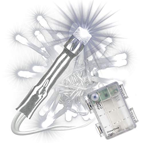 Nipach GmbH 30 LED Lichterkette weiß mit Timer für Innen Aussen transparentes Kabel Batterie 5 Meter Weihnachtsdeko Partydeko Partylichter Xmas