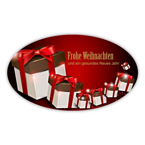 Weihnachtsaufkleber Weihnachtssticker Frohe Weihnachten und ein gesundes Neues Jahr oval 60 x 35 mm, 100 Stück auf Rolle, Haftpapier glänzend