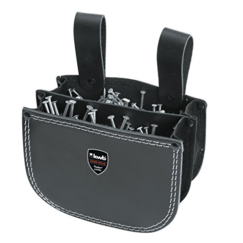 kwb Nageltasche aus Leder mit zwei Fächern und Gürtelschlaufe zum Einhängen in Schwarz
