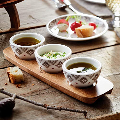 - Drei passgenaue Einbuchtungen für Dipschalen der Artesano Original Kollektion, Schmale Form und integrierte Griffe zum einfachen Weiterreichen