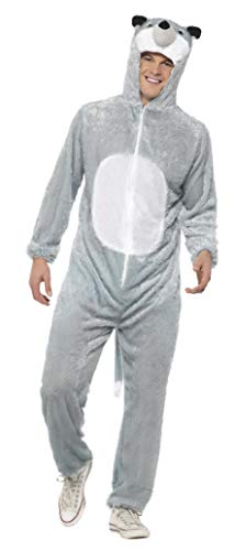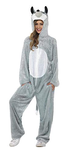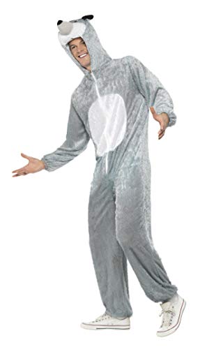 - Lieferumfang: 1 Smiffys Damen und Herren Wolf Kostüm, Jumpsuit mit Kapuze, Beinhaltet nicht: Schuhe, Farbe: Grau, Größe: L
