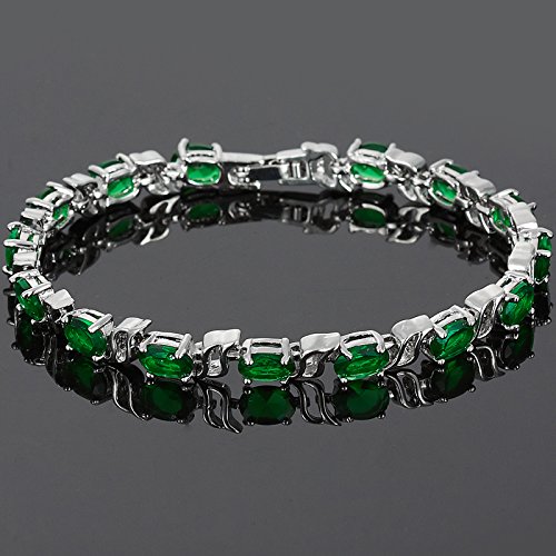 RIVA Tennis Armband [18cm/7inch] mit Ovalschliff Edelstein Zirkonia CZ [Grün Smaragd] in 18K Weißgold Vergoldet, Einfache Moderne Eleganz