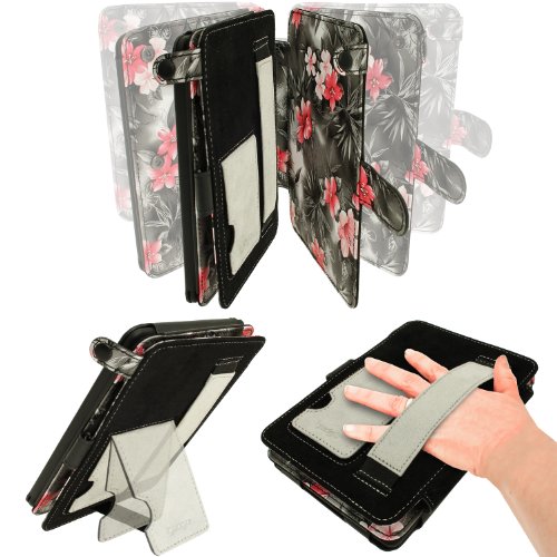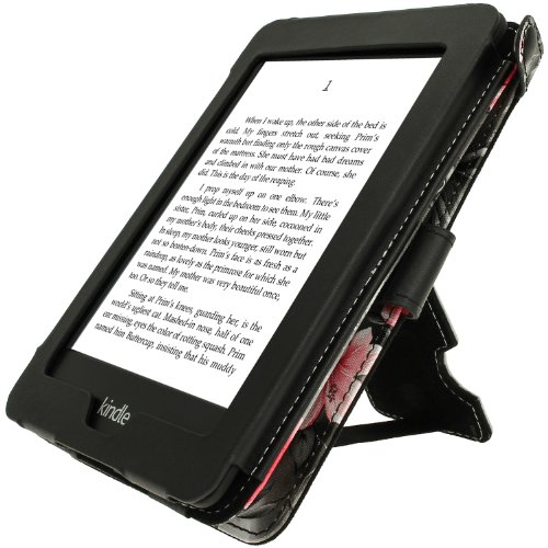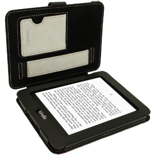 iGadgitz U2715 PU Leder Etui Hülle Kompatibel mit Amazon Kindle Paperwhite 2015/2014/2013/2012 - Rosa/Schwarz
