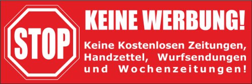 - Sie erhalten 5 Aufkleber, den Sie überall wo keine Werbung, Zeitungen, Sonntagzeitungen oder nur unerwünschte Post nicht erwünscht ist, aufkleben können.