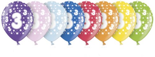 - Luftballons Metallic Zahl 3 ca. 30 cm Ø 6 Stück bunt gemischt Luftballon