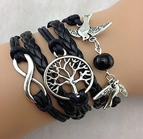 Armband Unendlichkeit Baum des Lebens, Taube Silber Schwarz / Infinity / besser Lederband / anhänger / One Direction