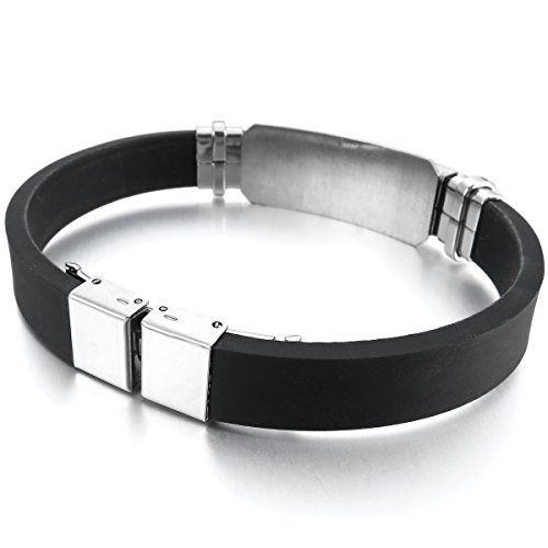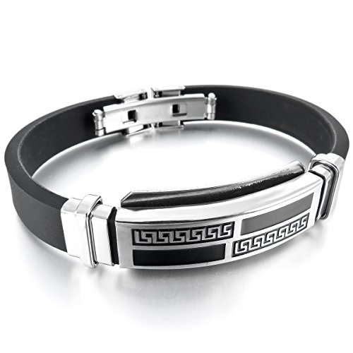 MunkiMix Edelstahl Gummi Kautschuk Armband Armreifen Manschette Silber Ton Schwarz Griechisch Herren
