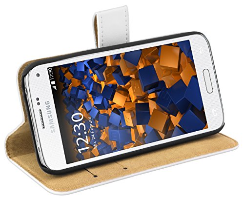 - Stabile Hülle Samsung Galaxy S5 mini: Das Echt Leder Material der Samsung Galaxy S5 mini Handy Hüllen sorgt wie alle mumbi Taschen für ein angenehmes Gefühl. 100 % passgenaue Samsung Hülle stoßfest weiss.