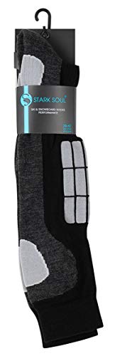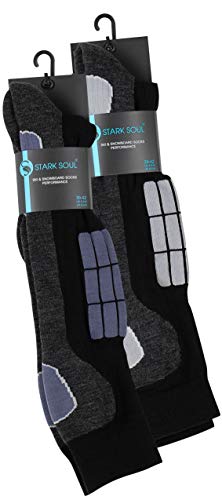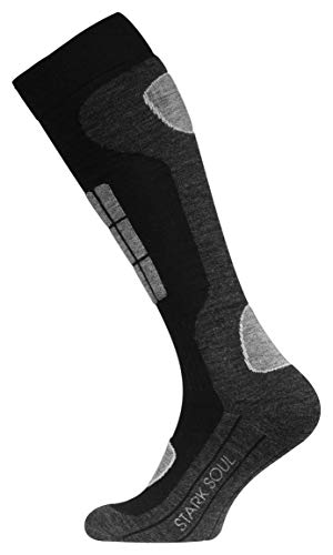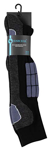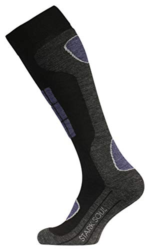 STARK SOUL Ski Funktionssocken, Wintersport Socken mit Spezial Polsterung, Schwarz-anthrazit mit Hellgrau & Jeansblau, 43/46, 2 Paar