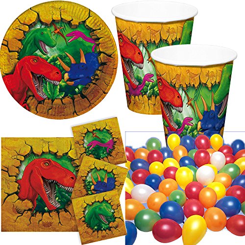 52-teiliges Partyset DINOSAURIER / T-REX mit Teller, Becher, Servietten, Luftballons von FOLAT // Kindergeburtstag Kinder Feier Set Fete Partygeschirr Deko Fest Kinder Geburtstag Party Mottoparty Motto Deko Dino Dinos Dinosaur