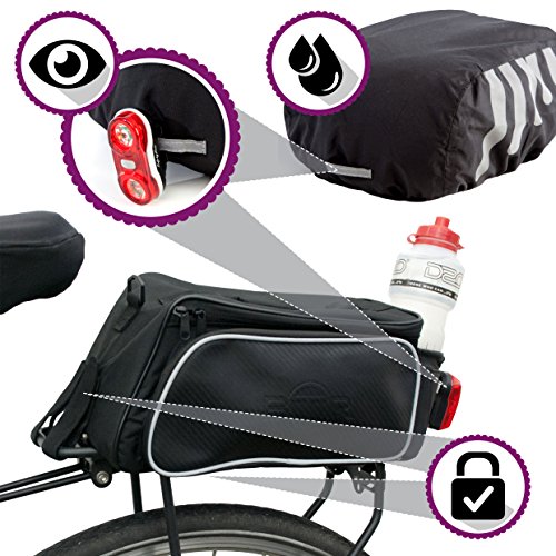 - Mit option für cargo-netz & einen wasserdichten regenschutz , der ihre gepäckträger taschen in eine wasserfeste fahrradtasche verwandelt.