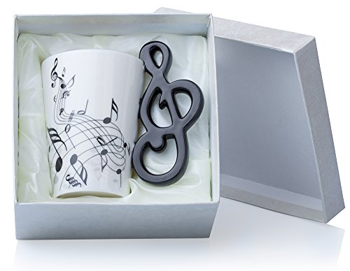 - Feine Teetasse bzw. Kaffeetasse mit Musik Motiven & Clef Henkel in einer Geschenkbox - verschenken Sie das ausgefallene Geschirr Teil an Ihre Freunde