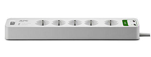 APC Surge Protector - PM5U-GR - Steckdosenleiste mit Überspannungsschutz (5-fach Stecker Schuko, schaltbar, 2 USB-Ladeausgänge - Farbe: weiß)