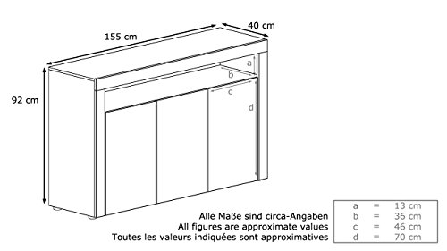 - Maße des Sideboards in cm (BxHxT): 155 x 92 x 40