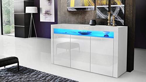 Vladon Sideboard Kommode Valencia, Korpus in Weiß matt/Front in Weiß Hochglanz mit Rahmen in Weiß Hochglanz