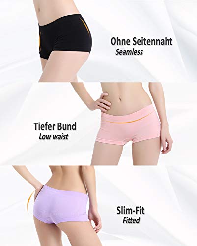 - 4er Pack hochwertige Damen Mikrofaser Boxershorts ohne Seitennähte. Anschmiegsam, elastisch, weich und stark dehnbar