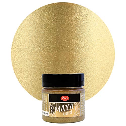 Viva Decor®️ Maya Gold (Champagner, 45 ml) Acrylfarbe mit Metallic Effekt - Malfarbe - Acryl Farben für Holz, Pappe, Beton, Papier, Leinwand UVM.