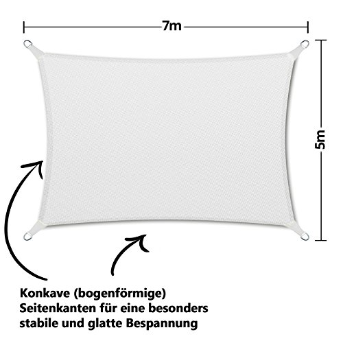 casa pura® Sonnensegel wasserabweisend imprägniert | Testnote 1.4 | Rechteck | UV Schutz Größen (weiß, 5x7m)