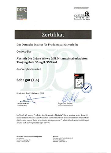 - Mit maximal erlaubten Thujongehalt 35 mg/L.
