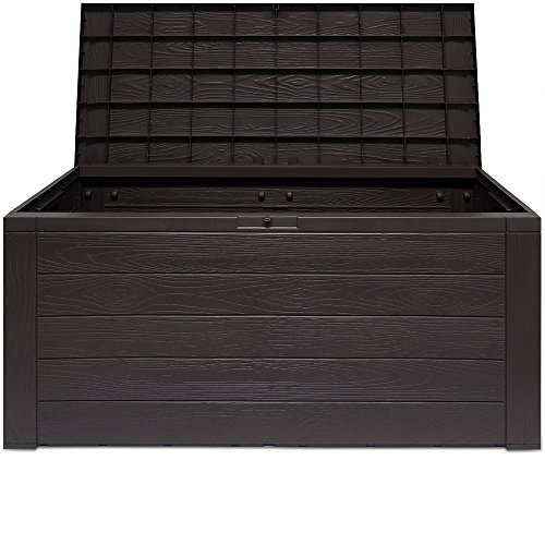 - ✔️ Stauraum: Unsere Auflagenbox in stylischer Holzoptik bietet Platz für Ihre Sitzauflagen, Kissen und andere Gartenaccessoires, aber auch für Werkzeuge, Spielzeuge und vieles mehr. So bietet die Kissentruhe den optimalen Schutz vor unliebsamem Wetter.