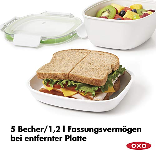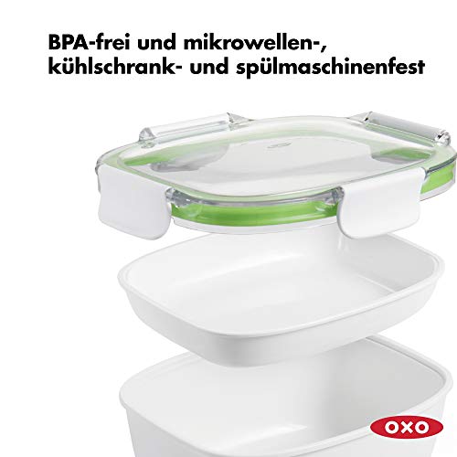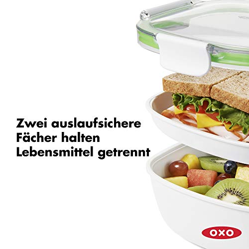 - Das Inhalt bleibt lecker, weil nasse und trockene Zutaten in zwei auslaufsicheren Fächern getrennt aufbewahrt werden