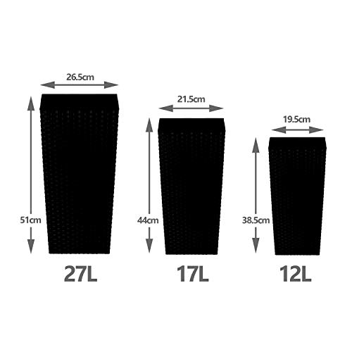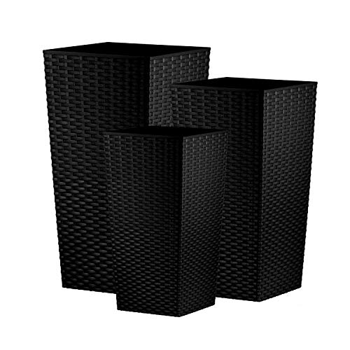crazygadget Rattan großen Übertopf quadratisch Kunststoff Garten Indoor Outdoor Blume Blumentopf schwarz, plastik, schwarz, Set of 3 (11.4L+16.3L+26.6L)