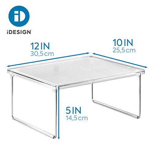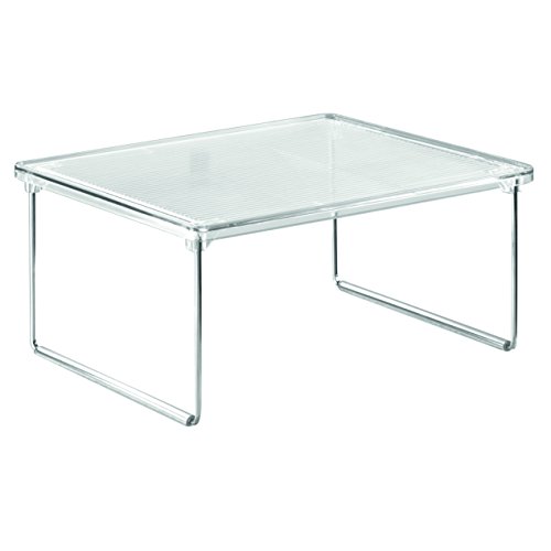 iDesign Küchenregal, kleines Gewürzregal aus Kunststoff und Metall, stapelbarer Küchen Organizer für Geschirr und Vorräte, durchsichtig und silberfarben
