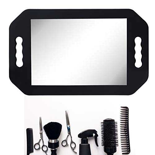 Handspiegel - (40.5 x 25 cm) Schwarze Friseur Schaumstoff Spiegel mit Doppelt Griff, Leichte Professionelle Friseur Werkzeuge Zum Haare Schneiden und Beauty (1 Pack)